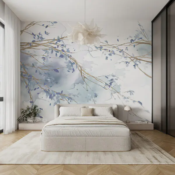 Papel de parede Pintura a aguarela de uma floresta e montanhas