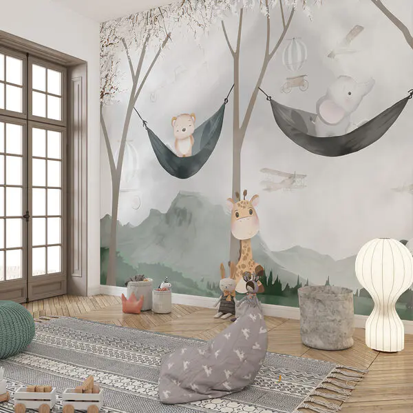 Papel de parede Desenho animado de uma pessoa num balão de ar quente