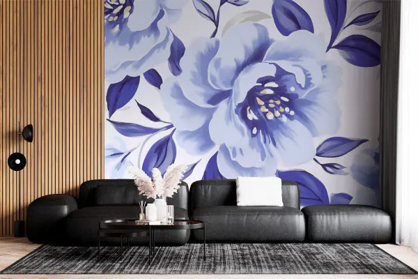• -40% Venda! Promoção! Papel de parede Papel de parede Flores e folhas azuis (REF: w02800)