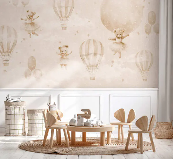 Papel de parede Grupo de balões de ar quente no céu sobre as montanhas