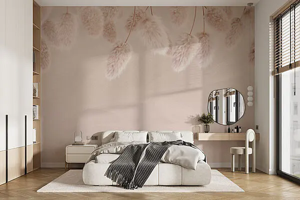 Papel de parede Grupo de folhas cor-de-rosa e brancas