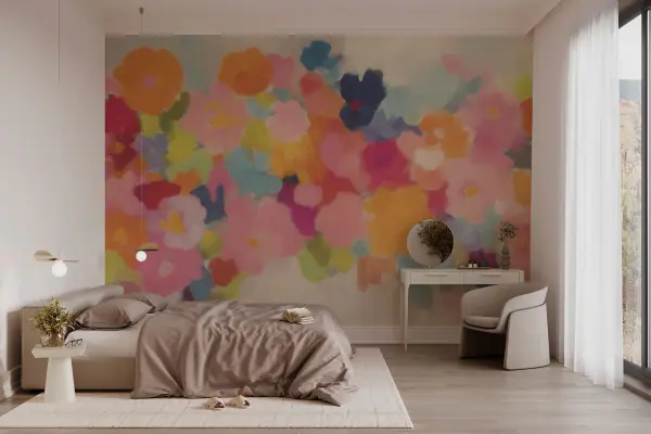Papel de parede Grupo de flores cor-de-rosa numa superfície branca