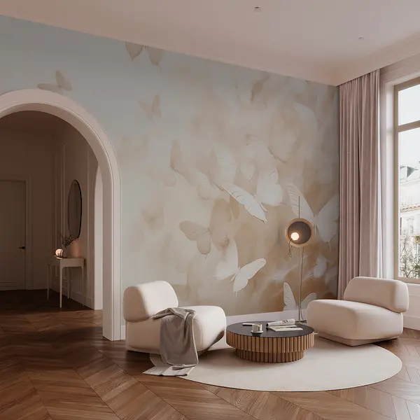 Papel de parede Grupo de desenhos florais brancos e castanhos