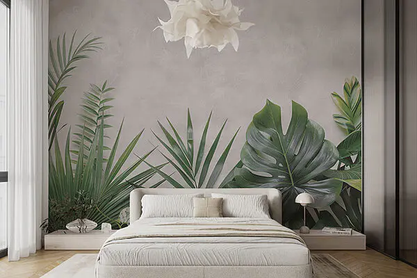 Papel de parede Grupo de palmeiras numa floresta com nevoeiro