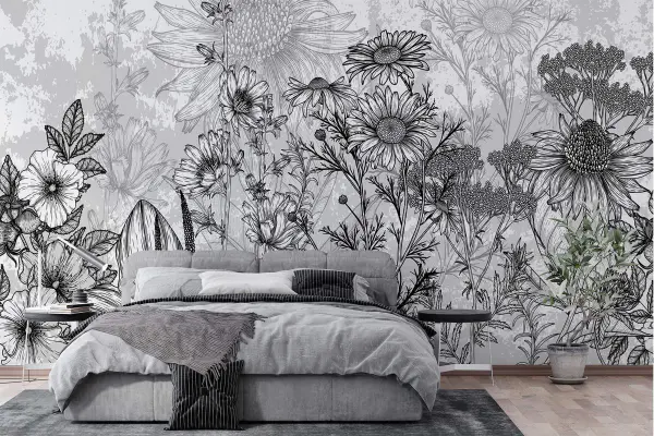 Papel de parede Imagem a preto e branco de flores
