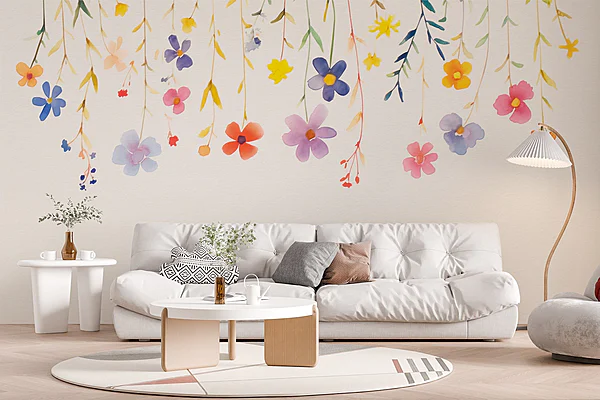 Papel de parede Pintura a aguarela de flores e plantas