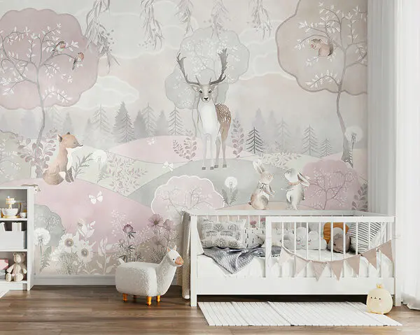 - Kids Dream: papel de parede infantil com cervos com traço suave e cores suaves.