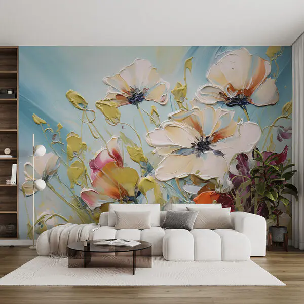 Papel de parede Flores vibrantes desabrocham em tons de azul-petróleo