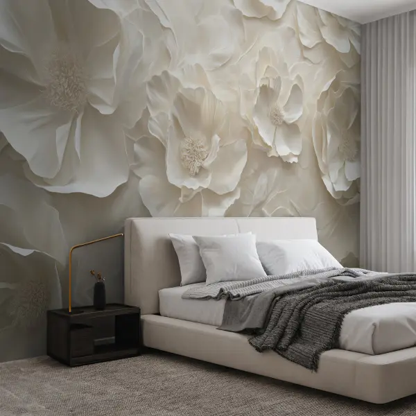 - Papel de parede 3D rosas: relevo visual que amplia a parede; combine com efeitos florais 3D.