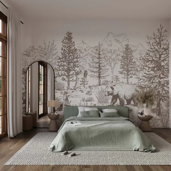 Papel de parede Veados e coelhos numa paisagem serena