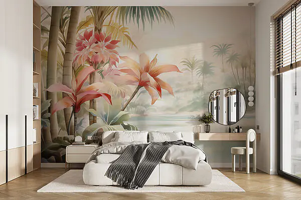 • -40% Venda! Promoção! Papel de parede Papel de parede Pintura de flores e palmeiras (REF: w01729)