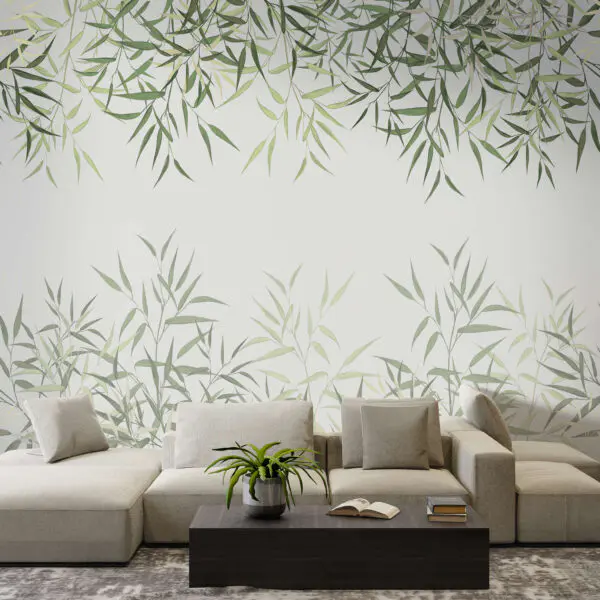 Papel de parede Folhas verdes sobre uma superfície branca