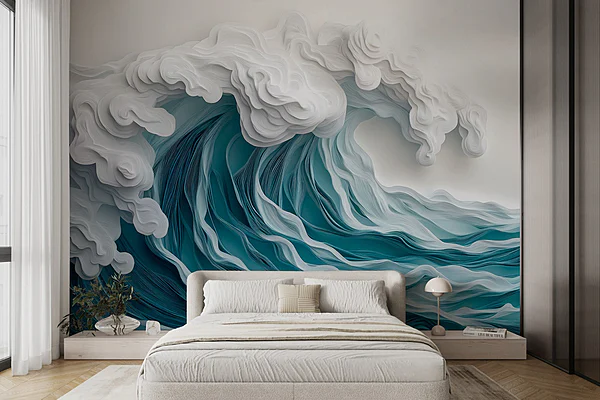 Papel de parede Pintura abstrata de ondas azuis e brancas