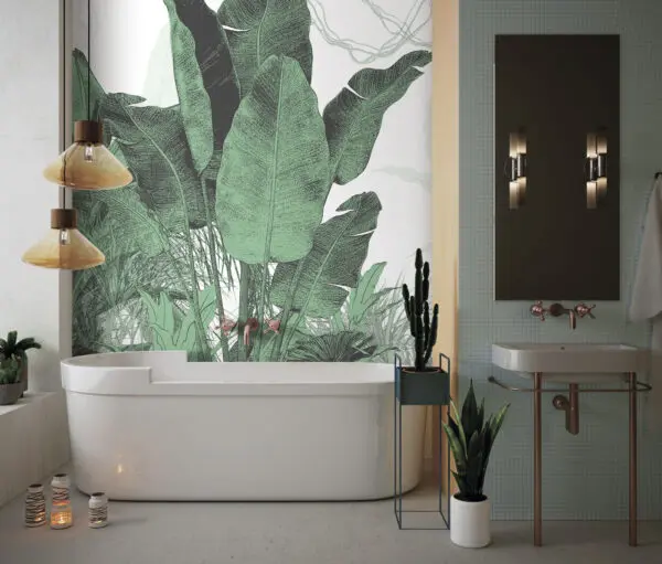 Papel de parede Verdes folhosos em tons artísticos suaves