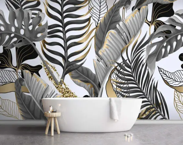 Papel de parede Elegância monocromática das folhas de bananeira
