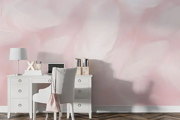 • -40% Venda! Promoção! Papel de parede Papel de parede Sonhos de penas em tons suaves de cor-de-rosa (REF: w01703)