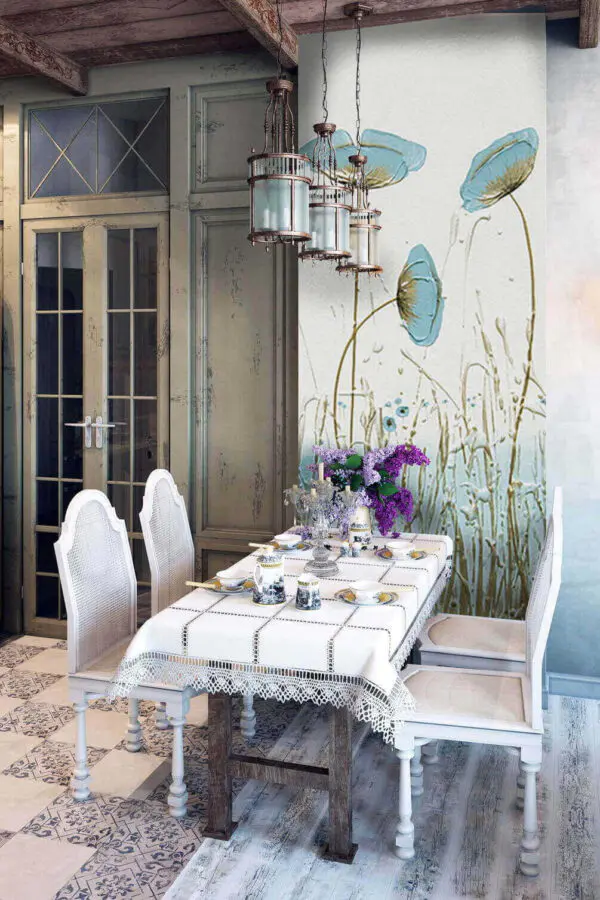 Papel de parede Delicadas flores roxas sobre tela branca
