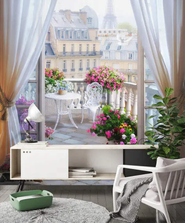 Papel de parede Varanda parisiense serena com flores