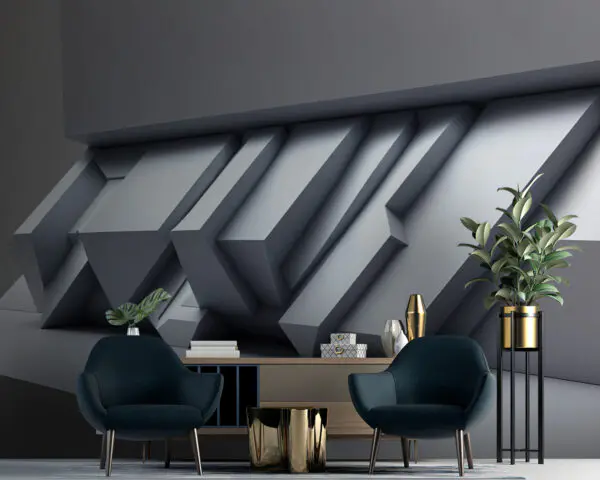Papel de parede Pintura de uma floresta com árvores e montanhas