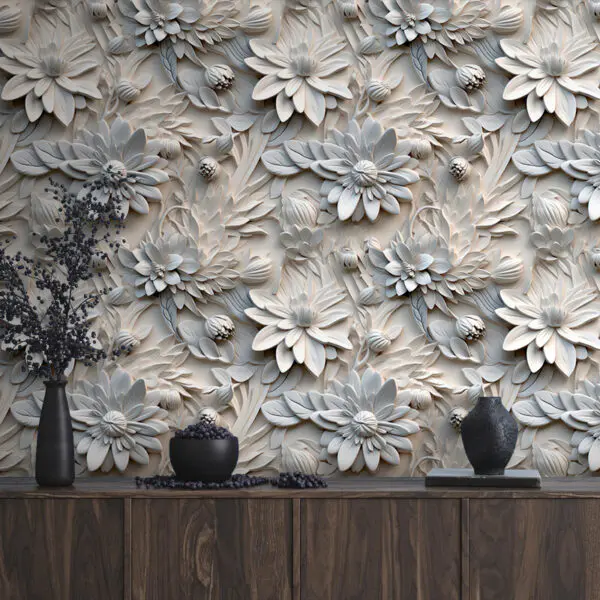 Papel de parede Elegantes flores metálicas representadas artisticamente