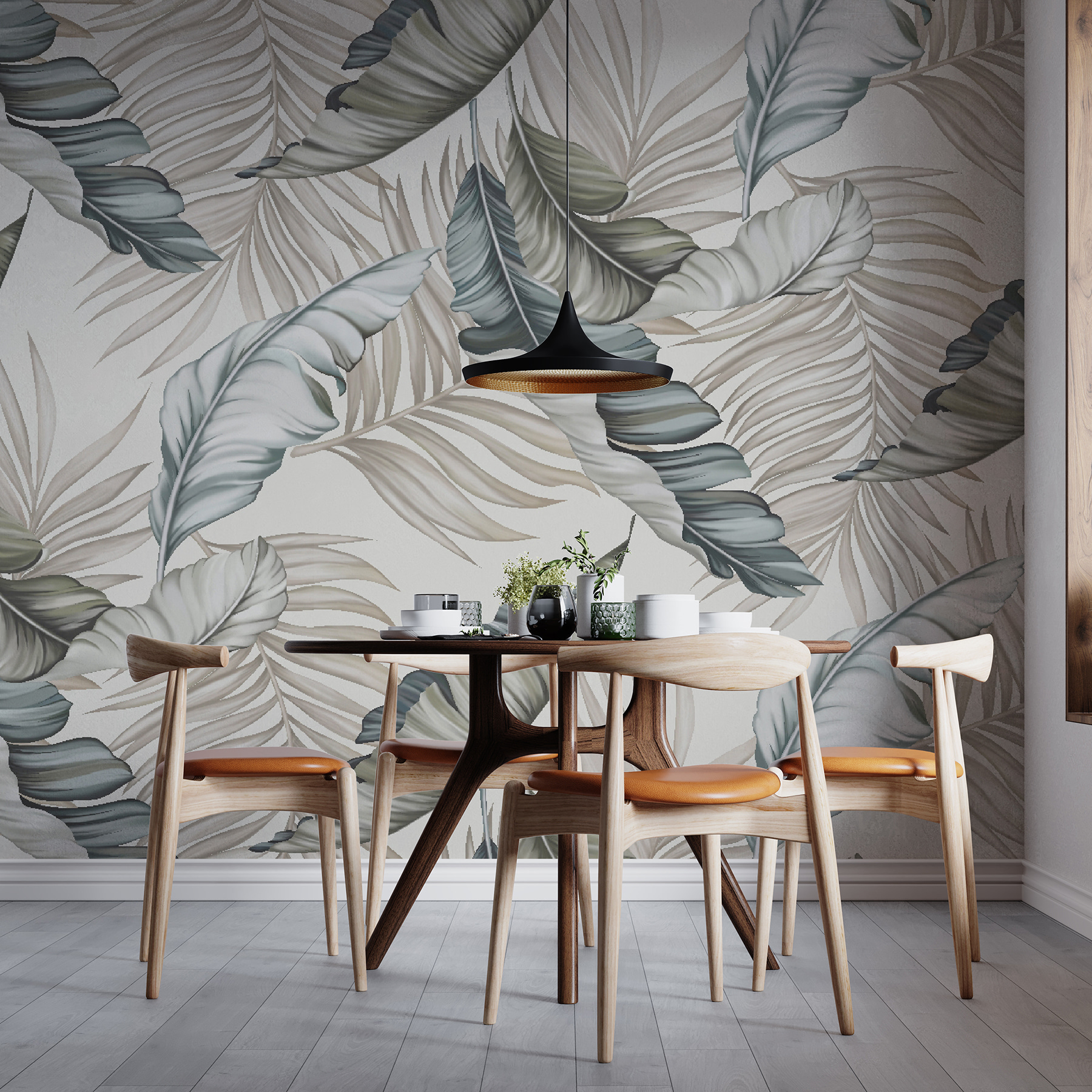Papel de parede Padrão monocromático elegante de folhas tropicais. (REF: u00013)