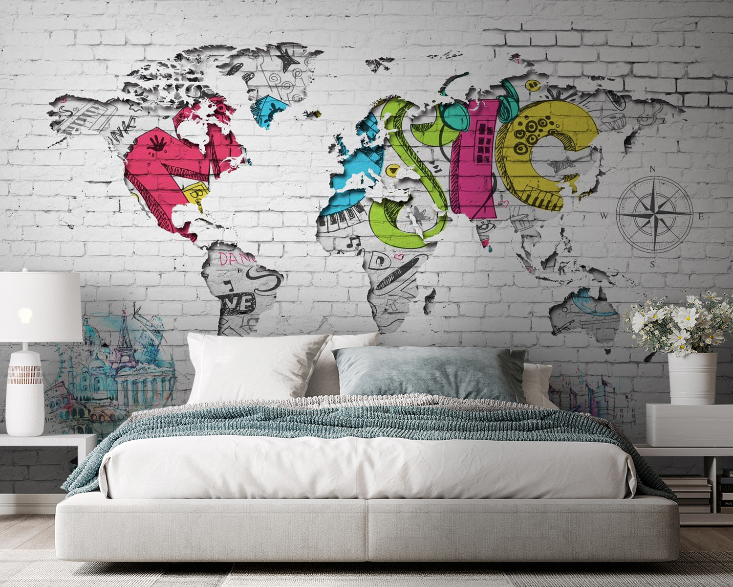 Transforme o seu espaço numa aventura com este mural de parede peculiar que apresenta desenhos arrojados e coloridos num fundo de tijolo clássico. Imagine entrar numa sala que parece estar a transbordar de histórias de todo o mundo – cada salpico de cor a contar a sua própria história. Não se trata apenas de decoração; é um convite para sonhar acordado. Perfeito para uma jovem que adora viajar ou para qualquer pessoa que goste de um pouco de criatividade na sua vida. Combine-o com alguns vasos de plantas e terá um recanto acolhedor que desperta alegria e talvez até um pouco de desejo de viajar. É tudo uma questão de criar memórias – tal como as que se vêem neste mural, prontas a inspirar cada dia!