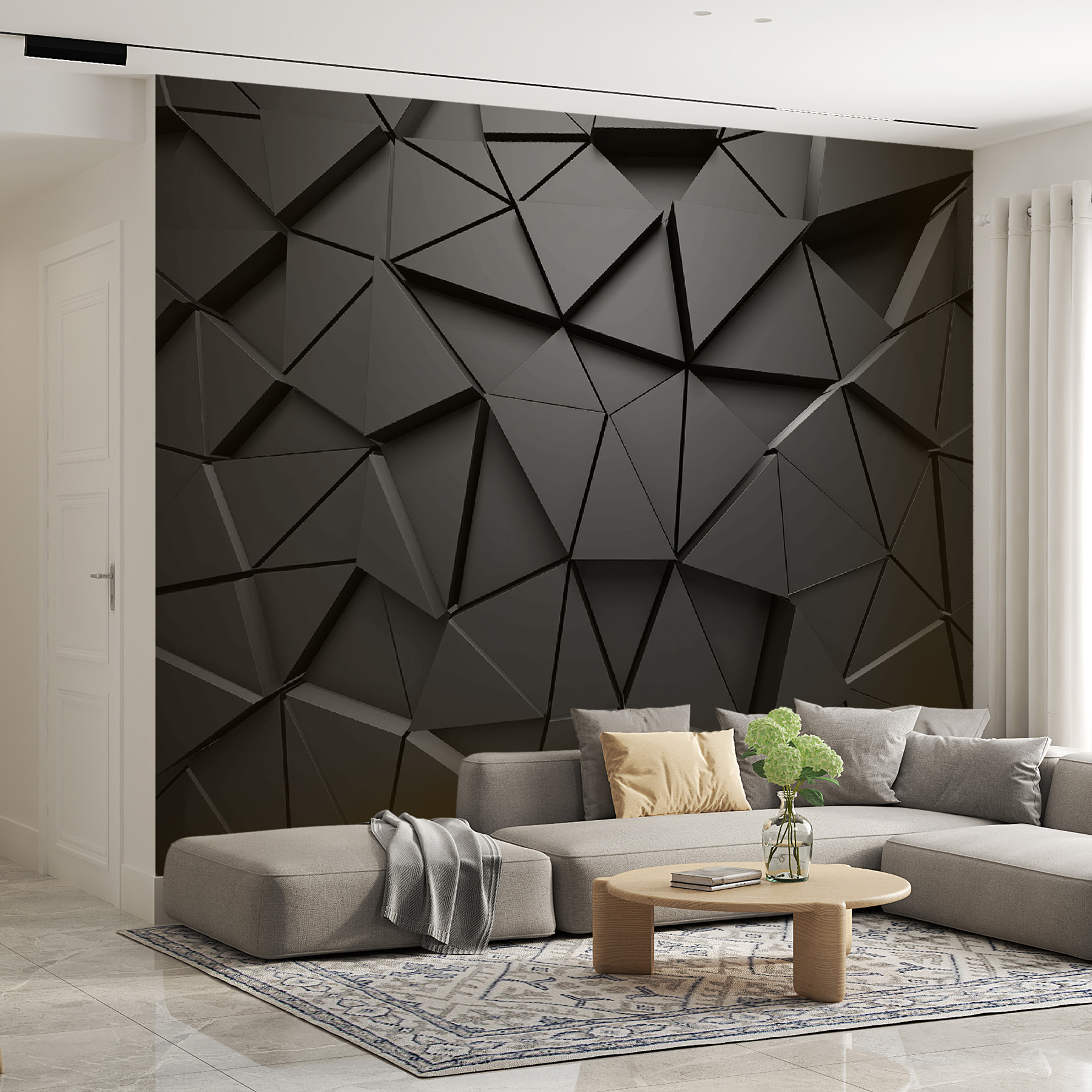 Transformar um espaço ficou muito mais fixe com este Padrão Abstrato Geométrico Monocromático. Imagine isto: uma parede que é menos um pano de fundo e mais uma peça de arte, a implorar por uma conversa amigável. Os triângulos sobrepostos criam uma vibração 3D fixe que parece fresca, como entrar numa galeria de arte moderna sem sair de casa. Dá uma sensação de profundidade e drama, perfeita para quem aprecia linhas simples e afirmações arrojadas. A luz que reflecte esses ângulos vai provocar a imaginação. Quer seja numa sala de estar acolhedora ou num escritório moderno, vai certamente suscitar conversas – e talvez um pouco de inveja dos amigos que nos visitam. Imagine um deles a dizer: “Preciso disso na minha vida!” Quem não precisaria? Abrace a ousadia e deixe que as suas paredes falem por si.