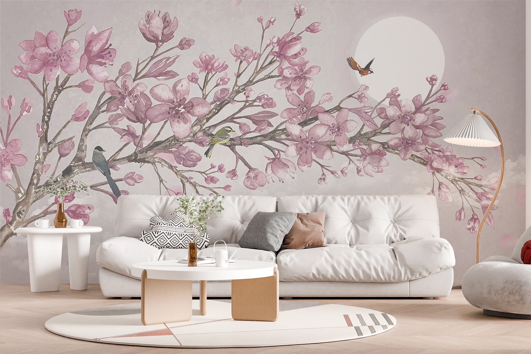 Transforme o seu espaço com este mural de parede encantador que apresenta um pássaro encantador aconchegado num ramo em flor. As delicadas flores cor-de-rosa e as cores suaves trazem uma sensação de frescura primaveril para dentro de casa, como um abraço caloroso após um longo inverno. Imagine-se a beber o seu café da manhã ou a enrolar-se com um livro enquanto esta bela cena ilumina a divisão. Não é apenas um mural; é uma pequena fatia da natureza que envolve as suas paredes, convidando a sorrisos e devaneios. Perfeito para quem gosta de encontrar beleza no quotidiano, acrescenta um capricho suave que é difícil de resistir.