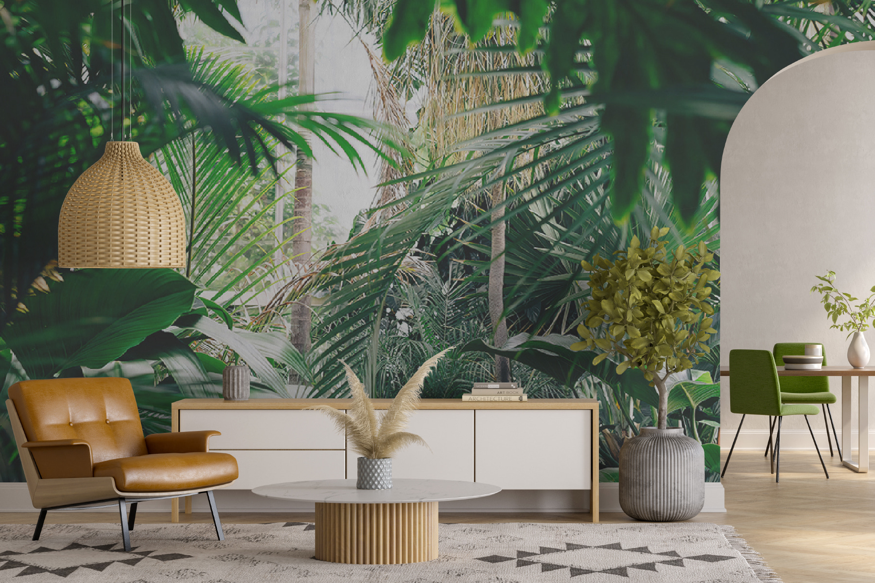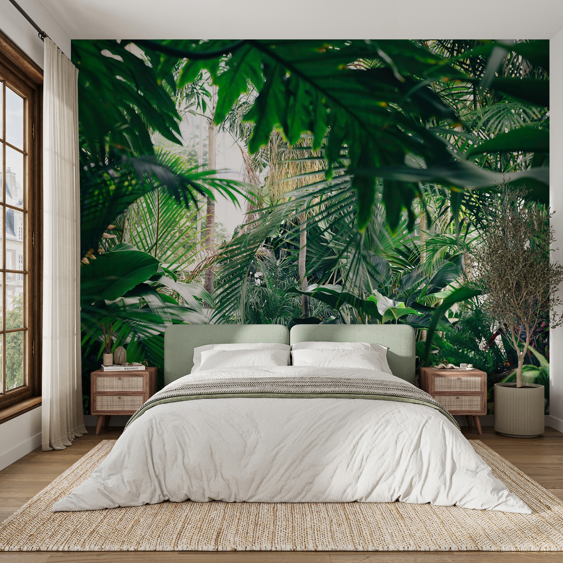 Transforme qualquer divisão num paraíso tropical com este deslumbrante mural de parede de folhagem exuberante da selva banhada pela luz do sol. Imagine entrar no seu espaço e sentir-se como se tivesse entrado diretamente numa selva serena, onde o ar é fresco e a luz do sol filtra através das folhas na perfeição. É como trazer uma fatia da natureza para dentro de casa sem o inseticida! Perfeito para quem deseja um pouco de verde, mas não tem o polegar verde. Os amigos vão pensar que encontrou o melhor local de férias mesmo em casa. Imagine-se a aconchegar-se com um bom livro ou a desfrutar de uma chávena de café, rodeado por esta fuga vibrante. Não se trata apenas de um mural; é uma lufada de ar fresco para as suas paredes!