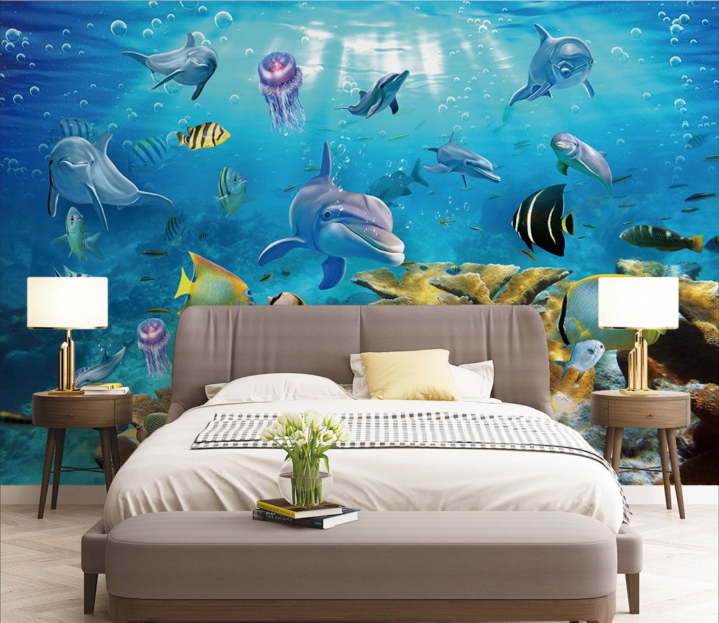 Mergulhe num mundo de cor e encanto com este encantador mural de um paraíso aquático! Imagine entrar numa sala e sentir-se instantaneamente como se tivesse mergulhado numa serena cena subaquática — bolhas a flutuar, peixes coloridos a nadar rapidamente e golfinhos brincalhões a sorrir para si. Perfeito para um quarto de criança ou mesmo para aquele recanto onde a criatividade flui, este mural traz um toque de alegria e uma onda de calma. É como ter seu próprio aquário sem o trabalho de limpar. Deixe seu espaço nadar em energia vibrante e veja os pequenos rirem de seus novos amigos subaquáticos. Mas tome cuidado — você pode começar a se sentir um pouco peixinho também!