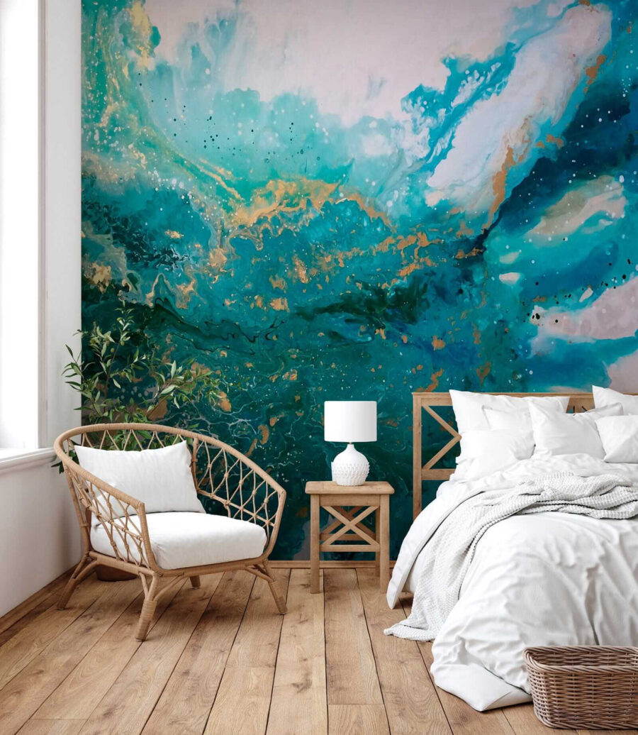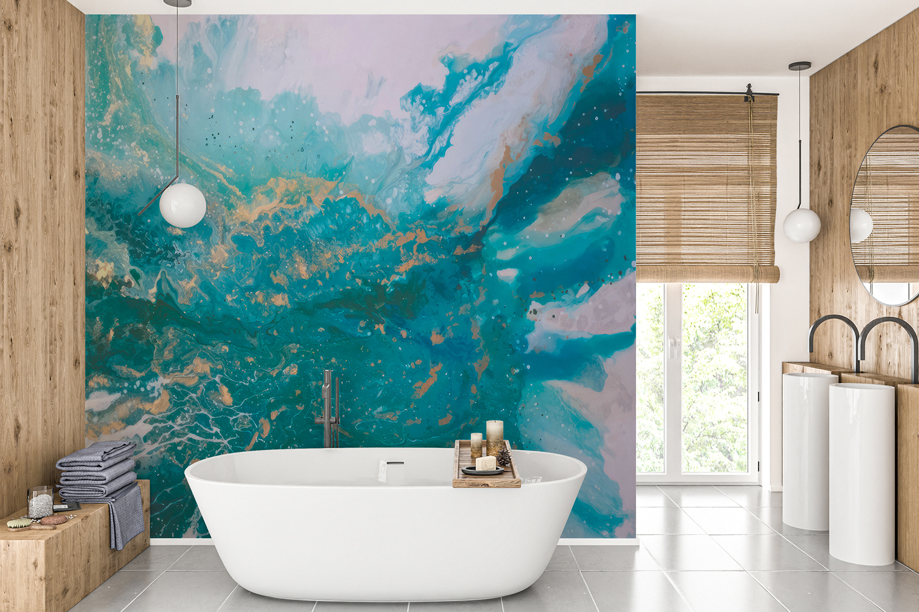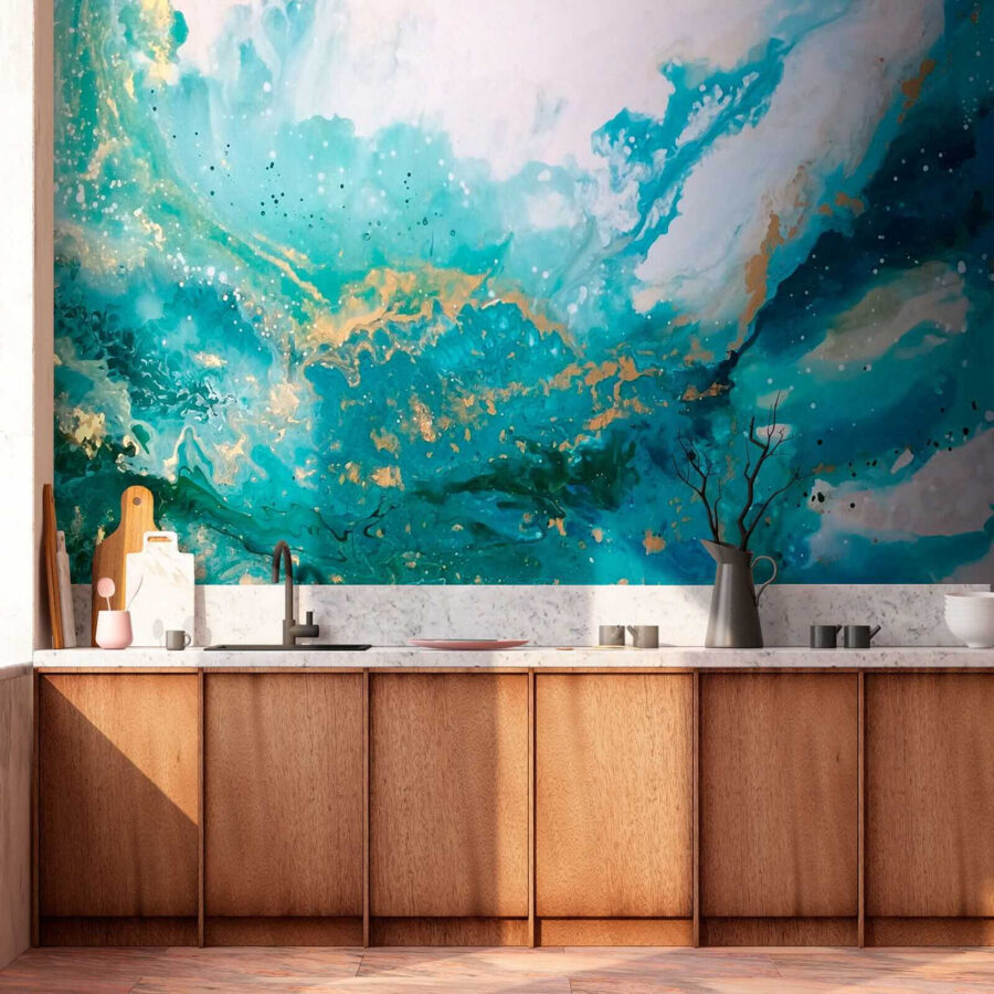 Pense nisto: Chega a casa depois de um longo dia e as suas paredes transportam-no diretamente para a costa. É como umas mini-férias sempre que se olha para elas. Quer seja um fã de arte abstrata, hipnotizado por designs de mármore, ou apenas queira que o seu espaço se sinta mais… vibrante – este mural tem tudo o que precisa.