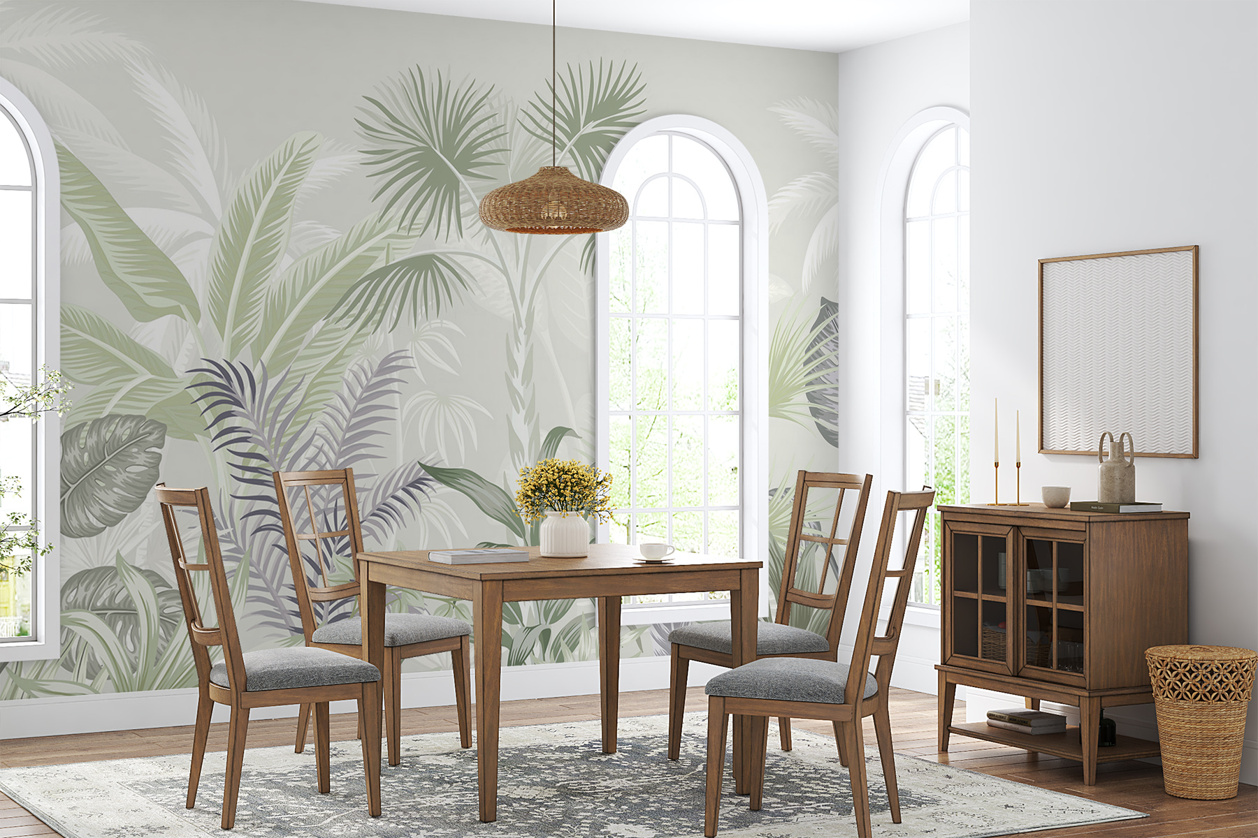Imagine entrar numa floresta tropical relaxante sempre que entra na sala. É essa a magia dos “Fotomurais Ilustração de folhas tropicais em tons suaves”. Com os seus verdes suaves e folhagem exuberante, é como umas mini-férias sem sair de casa. Sentirá uma calma imediata quando os seus olhos vaguearem pelas folhas intrincadas. É mais do que uma simples decoração – é um pequeno escape.