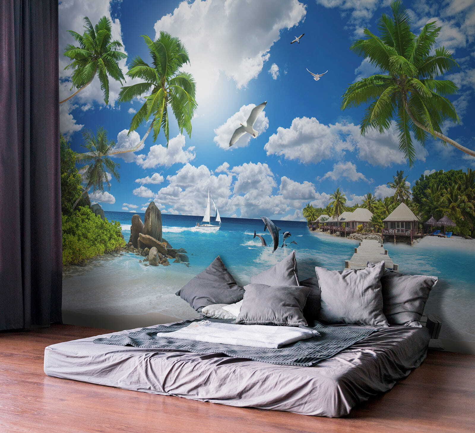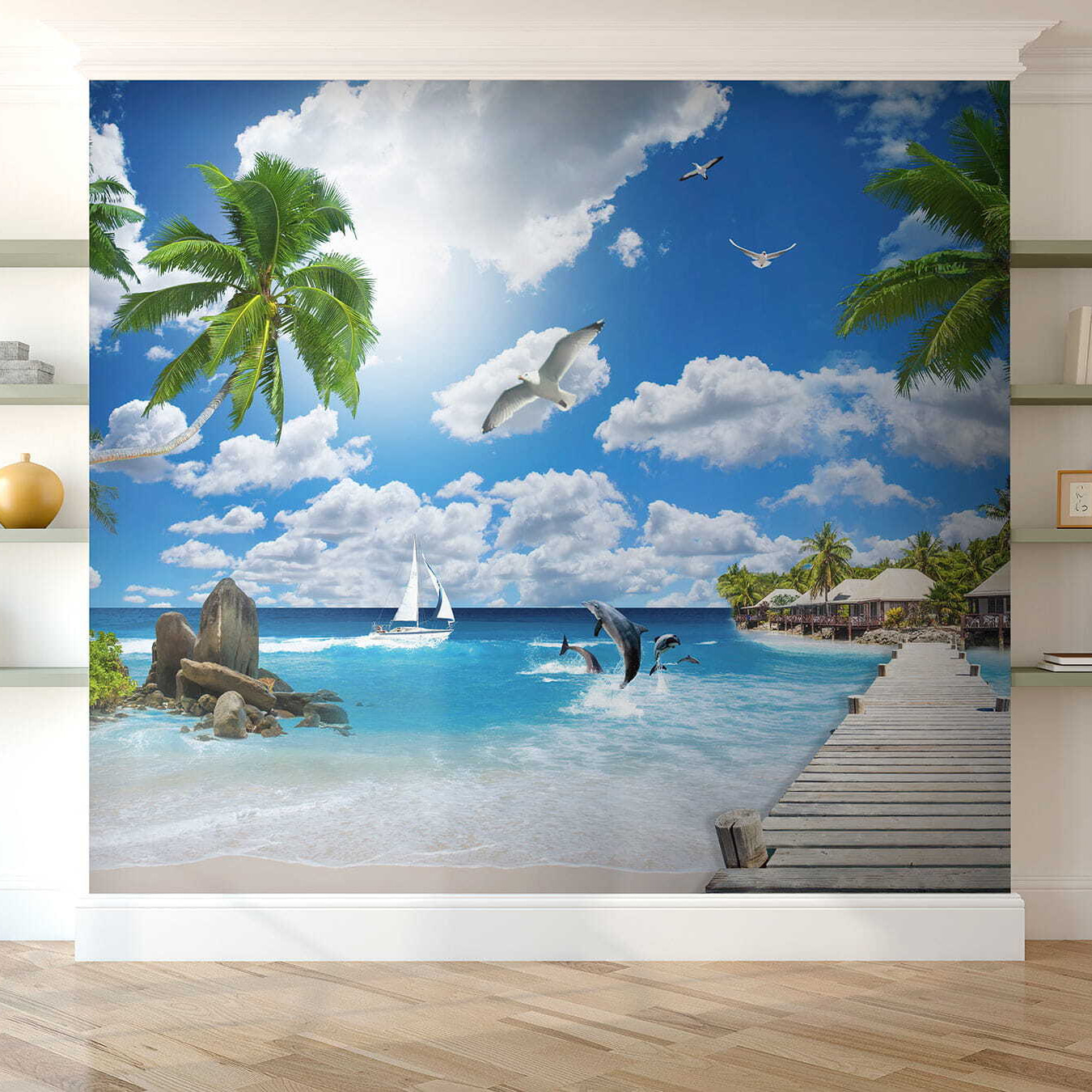 Imagine entrar num paraíso tropical sempre que entra numa divisão. Este deslumbrante mural, “Bird Flying in the Sky” (Pássaro a voar no céu), leva-o numa rápida escapadela para dias de sol e brisas suaves do oceano. Os azuis vibrantes e os verdes exuberantes atraem-no, como uma bebida fresca num dia quente. É perfeito para aquela parede que precisa de um pouco de amor, criando uma sensação de verão sem fim. Imagine-se a receber amigos ou apenas a desfrutar de um momento tranquilo – respire essa vibração serena. Não se trata apenas de decoração; é um convite para fugir ao normal e mergulhar na sua própria fatia da maravilha da natureza.