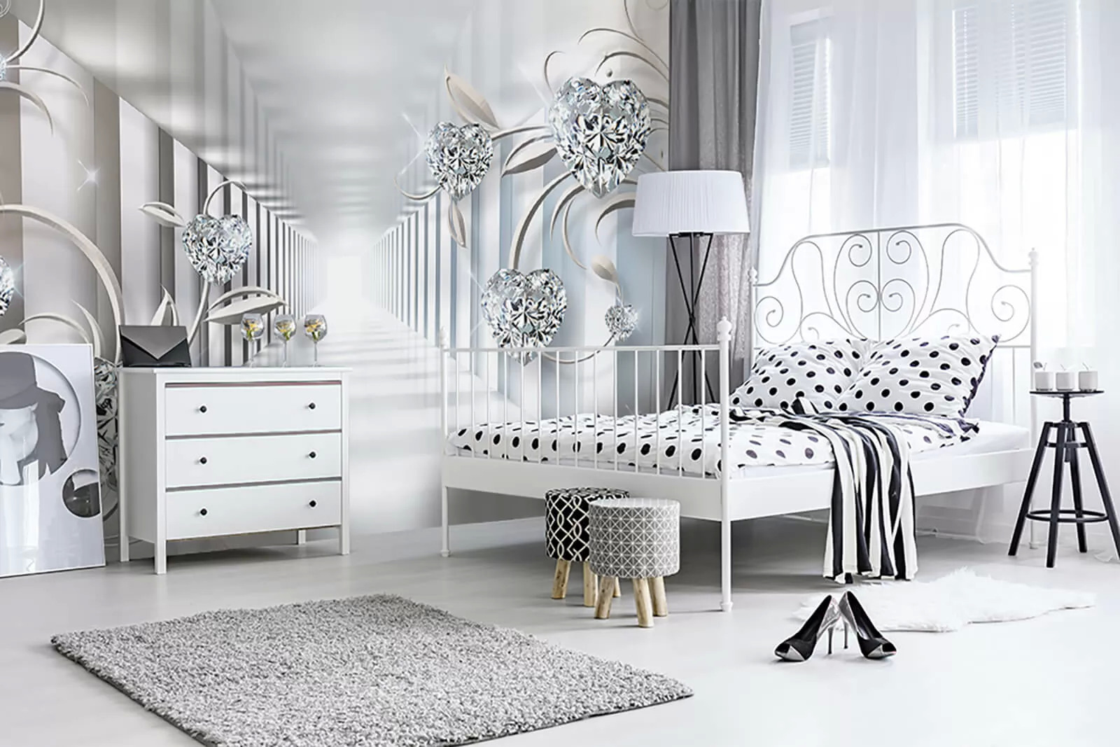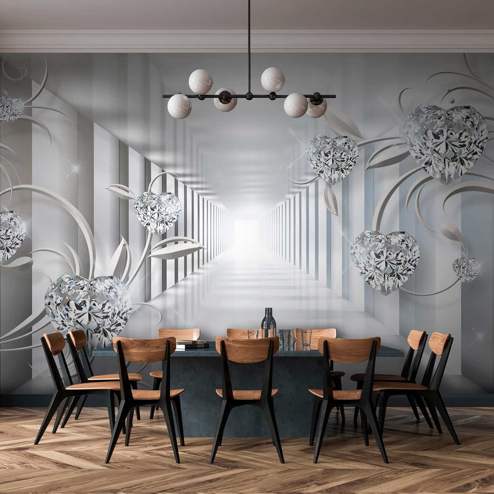 Transforme qualquer espaço num oásis de sonho com os murais de parede Diamond in the Shape of a Heart. Este mural traz um toque de capricho e romance, tornando-o perfeito para quartos, salas de estar ou qualquer outro lugar que precise de um toque de criatividade. Imagine entrar na sala e ser recebido por estas formas de coração deslumbrantes a dançar entre vinhas suaves. É como se as paredes lhe estivessem a dar um abraço caloroso. O efeito 3D atrai-o, criando uma sensação de profundidade que o convida a explorar este mundo mágico. Perfeito para pessoas que apreciam um pouco de estilo, mantendo-o acolhedor. É uma escolha encantadora para quem procura dar ao seu espaço uma sensação única.