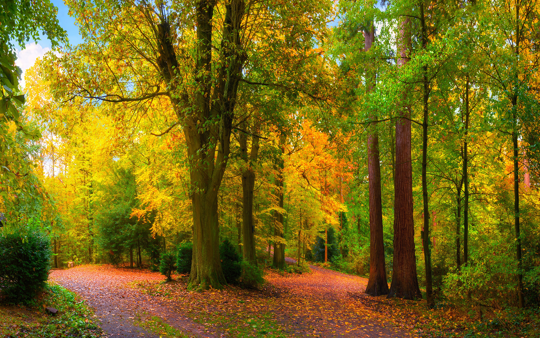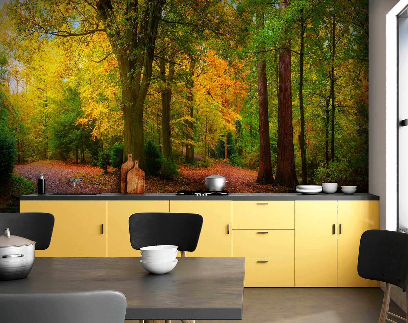 1 avaliação de Papel de parede Floresta de outono colorida com um caminho sinuoso