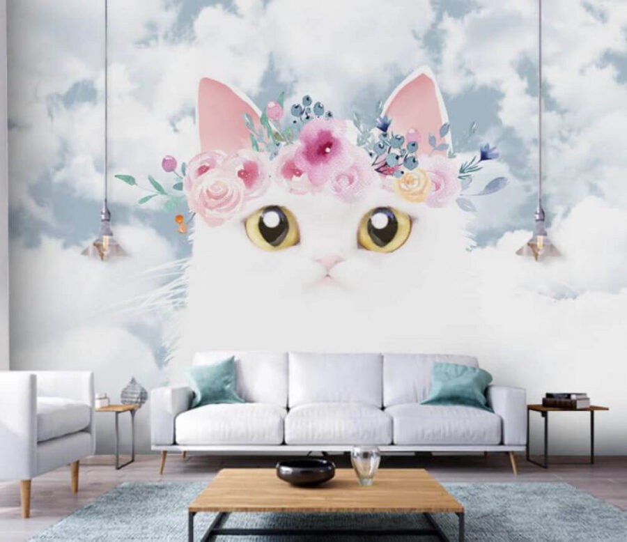 Imagine acordar todos os dias com este mural de sonho de um gato branco com uma coroa de flores – é como se o seu amigo peludo estivesse a flutuar nas nuvens, rodeado de flores suaves e de um céu sem fim. É como se o seu amigo peludo estivesse a flutuar nas nuvens, rodeado por flores suaves e um céu sem fim. Perfeito para o espaço de qualquer amante de gatos, parece que tem um pequeno pedaço de capricho mesmo na sua parede. Com aqueles grandes e adoráveis olhos e a coroa de flores pastel, este mural traz uma vibração doce e pacífica a qualquer sala. Quer seja um quarto, uma sala de estar, ou mesmo um canto de leitura acolhedor, vai sempre sorrir ao ver este gato encantador a olhar por si. Então, está pronto para dar um pouco de magia e de fofura às suas paredes? É pura perfeição!