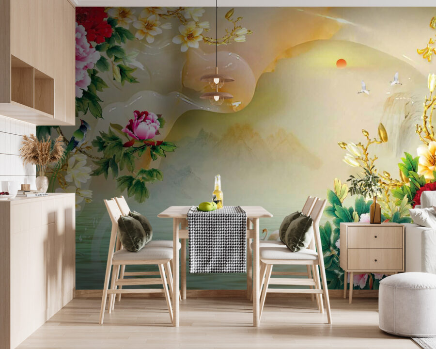 Transforme qualquer espaço num oásis tranquilo com este encantador mural de parede com flores vibrantes e cisnes graciosos. As flores de peónia destacam-se com cores vivas, criando uma atmosfera animada, enquanto os cisnes serenos deslizam sobre uma superfície de água de sonho, convidando a um olhar relaxante durante a tarde. Imagine-se a beber chá aqui, sentindo-se como se tivesse entrado numa pintura em aguarela. Esta peça é perfeita para paredes de destaque ou recantos acolhedores, combinando sem esforço a beleza da natureza com a sua decoração. Não é apenas arte; é um convite para fazer uma pausa, respirar e desfrutar um pouco mais da vida.