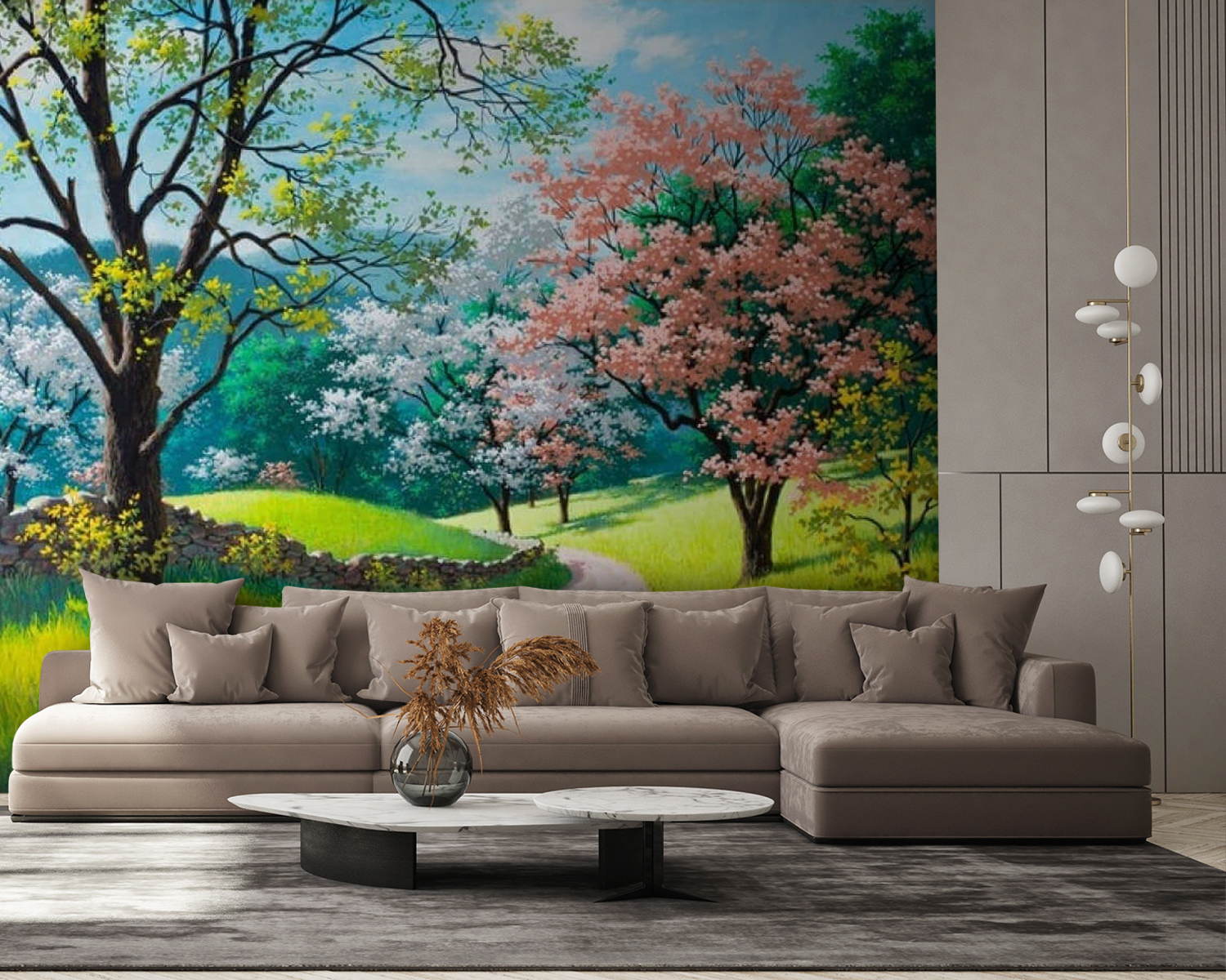 Imagine entrar num refúgio sereno sempre que entra no seu quarto. Este mural de parede, “Estrada de terra batida através de um campo relvado com árvores”, capta perfeitamente essa sensação. Quase se consegue ouvir o suave farfalhar das folhas e o canto suave dos pássaros ao longe. Com verdes vibrantes e toques divertidos de flores rosa e brancas, ele convida a sonhar acordado com passeios tranquilos por um caminho ensolarado. Perfeito para uma sala de estar aconchegante ou um quarto tranquilo, ele traz a natureza para dentro de casa — sem precisar de luvas de jardinagem! Pendure-o, respire fundo e deixe seu espaço parecer um refúgio encantador. Sério, quem precisa de férias quando suas paredes podem fazer o mesmo efeito?