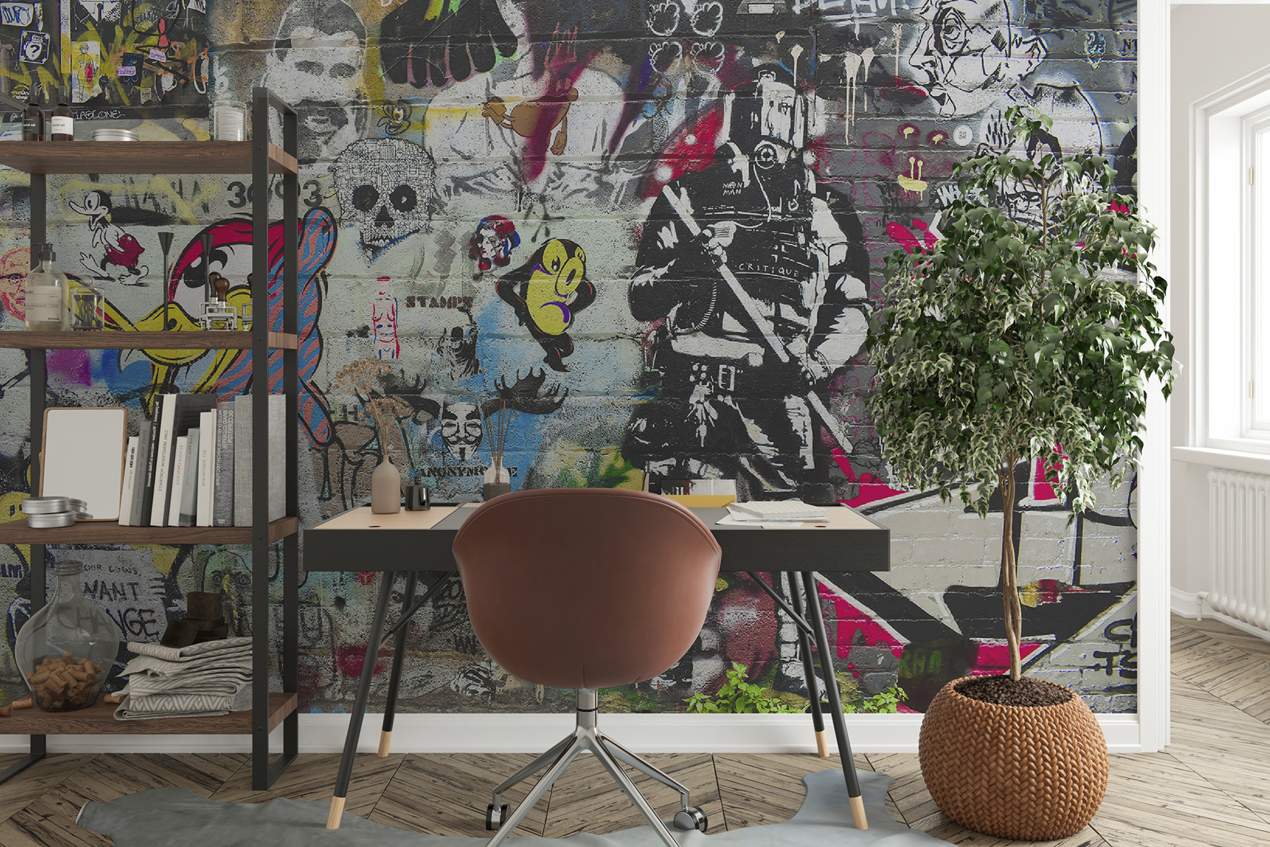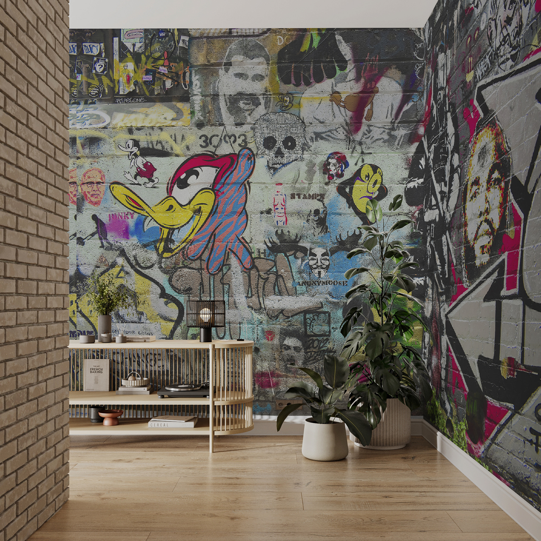 Alguma vez quis sentir que está a viver num loft artístico da cidade? Este mural “Homem com barba e bigode pintado numa parede de tijolo” traz essa vibração diretamente para o seu espaço. Não é apenas uma parede – é um pop de personalidade, uma afirmação ousada, um início de conversa. Imagine-se a beber o seu café da manhã, deixando os seus olhos vaguearem pelos pormenores intrincados e pelas personagens peculiares. É como ter uma mini galeria de arte mesmo em casa. Além disso, há algo de tão fixe num mural numa parede de tijolo – acrescenta aquele toque de história e grunge. É perfeito para quem gosta de um pouco de criatividade na sua decoração! Por isso, vá em frente e deixe que as suas paredes falem de elegância urbana!