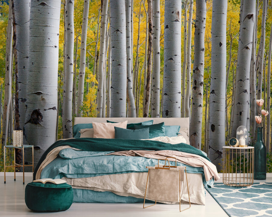 Papel de parede Grupo de árvores brancas com folhas amarelas (REF: u13453)