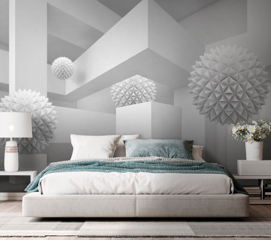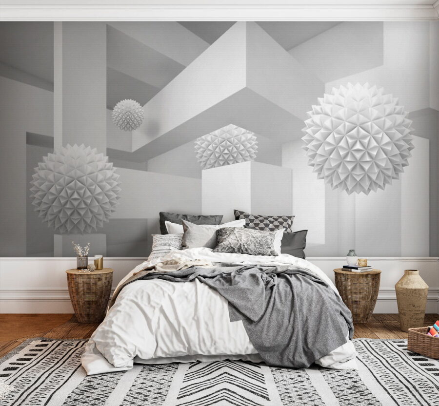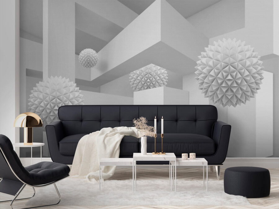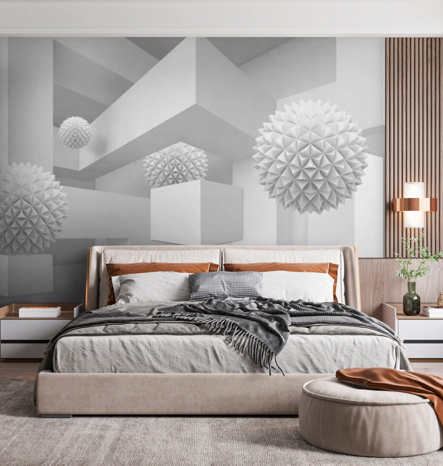 Imagine entrar num espaço sereno e sonhador onde o branco é a estrela do espetáculo. Este mural, que representa uma sala limpa e luminosa cheia de bolas tridimensionais peculiares, parece uma aventura caprichosa na simplicidade. As formas divertidas sobressaem contra o pano de fundo, convidando a olhares curiosos e sorrisos suaves. Perfeito para uma sala de estar moderna ou um canto criativo, transforma qualquer parede num ponto de partida para uma conversa. Imagine-se a receber amigos, com os olhos a brilharem de perplexidade e o riso a borbulhar enquanto tentam descobrir a história por detrás destas formas flutuantes. Não se trata apenas de um mural; é uma experiência à espera de acontecer.