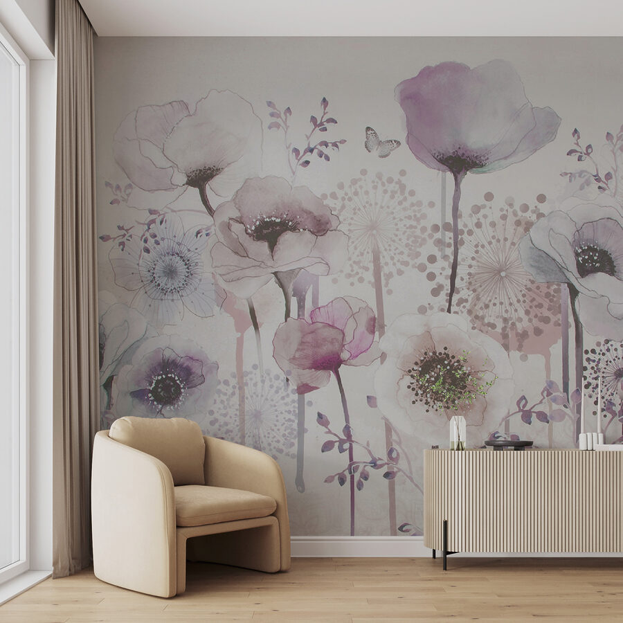 Este mural não é um sonho? Imagine entrar no seu quarto e sentir-se como se tivesse entrado num jardim encantado. “Delicate Watercolor Flowers and Butterflies” capta o encanto de um prado sereno, com pétalas suaves em tons de lavanda e blush. Estas pequenas borboletas dão um toque tão caprichoso – como se estivessem prestes a esvoaçar! Perfeito para um quarto de dormir ou para um recanto de leitura acolhedor, este mural reúne calma e beleza. Os amigos podem pensar que passou horas a pintá-lo sozinho… e não faz mal deixá-los acreditar nisso!