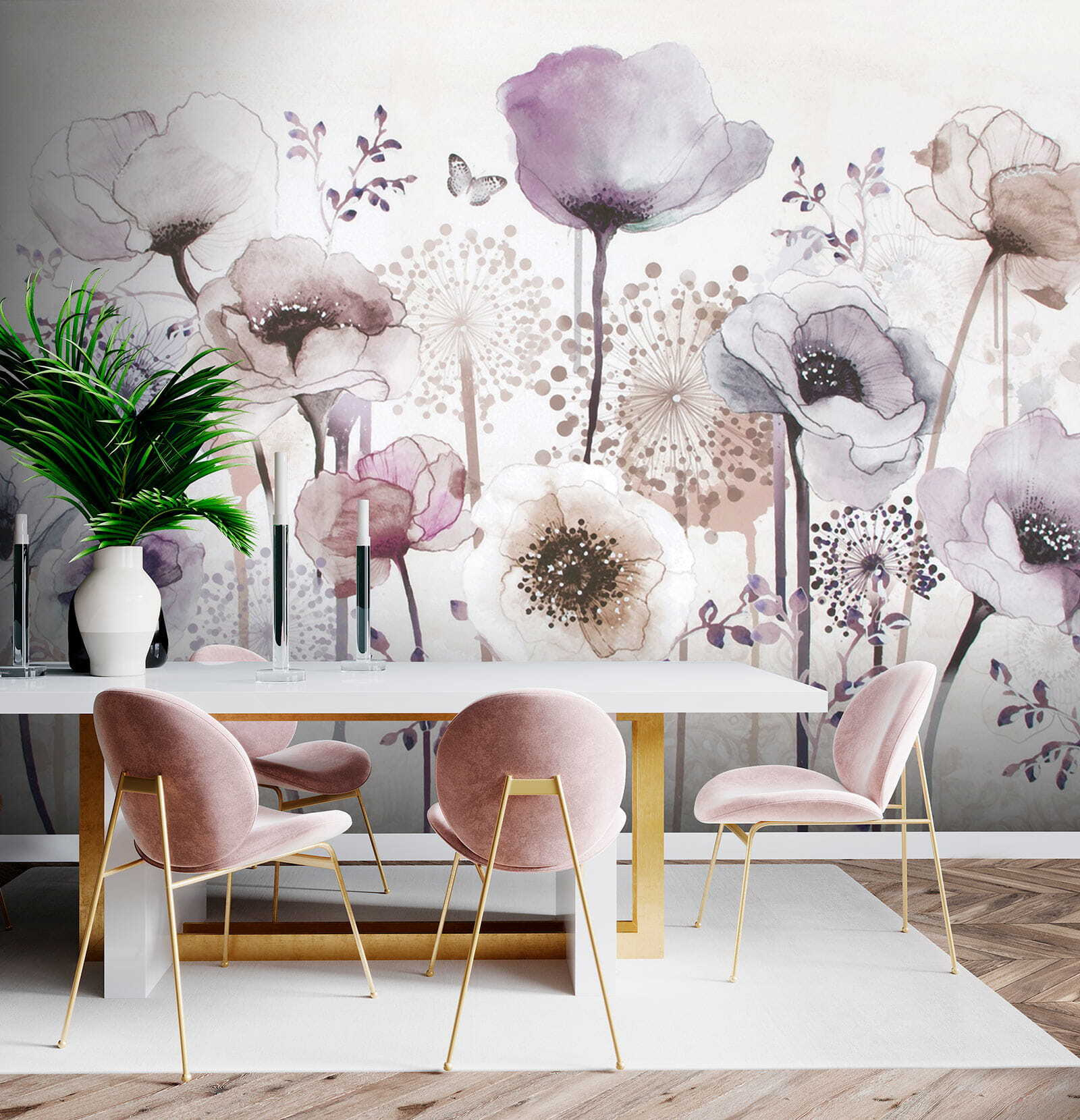 Este mural não é um sonho? Imagine entrar no seu quarto e sentir-se como se tivesse entrado num jardim encantado. “Delicate Watercolor Flowers and Butterflies” capta o encanto de um prado sereno, com pétalas suaves em tons de lavanda e blush. Estas pequenas borboletas dão um toque tão caprichoso – como se estivessem prestes a esvoaçar! Perfeito para um quarto de dormir ou para um recanto de leitura acolhedor, este mural reúne calma e beleza. Os amigos podem pensar que passou horas a pintá-lo sozinho… e não faz mal deixá-los acreditar nisso!