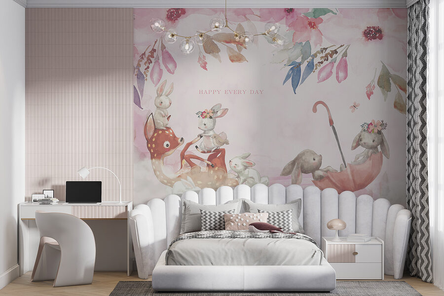 Quer tornar o quarto do seu filho absolutamente mágico? Veja este adorável mural “Coelho com Flores”! Perfeito para o quarto de uma filha, apresenta o coelhinho mais giro com flores na cabeça – como uma pequena princesa da floresta. Imagine isto: as cores pastel suaves criando uma vibração sonhadora e calmante, tornando cada história de embalar um pouco mais caprichosa. Imagine os olhos do seu filho a brilharem sempre que o vê… Pura magia! Não é apenas um mural de parede; é um convite a um mundo de imaginação e de gargalhadas. E quem não gostaria de ter um amigo coelhinho a olhar por eles enquanto brincam e sonham? Este design doce e delicado vai certamente trazer calor e alegria a qualquer espaço. Além disso, é um ótimo pano de fundo para todas aquelas fotografias de família que guardará para sempre. Não está a ver? Tão encantador… tão perfeito!