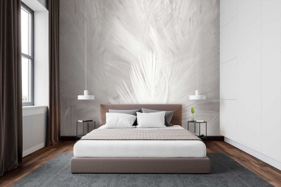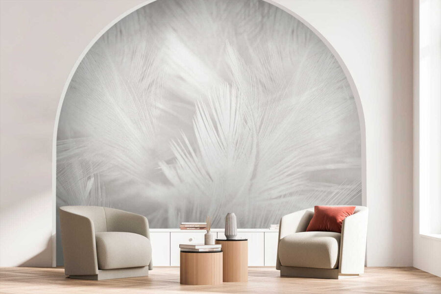 A suavidade do branco sobre branco transmite uma sensação de serenidade e, a sério, quem não precisa de um pouco mais de paz no seu espaço? Perfeito para aqueles serões acolhedores ou manhãs tranquilas com uma chávena de café. E não se trata apenas de aparência! Este mural pode fazer com que qualquer divisão se sinta mais espaçosa e arejada.