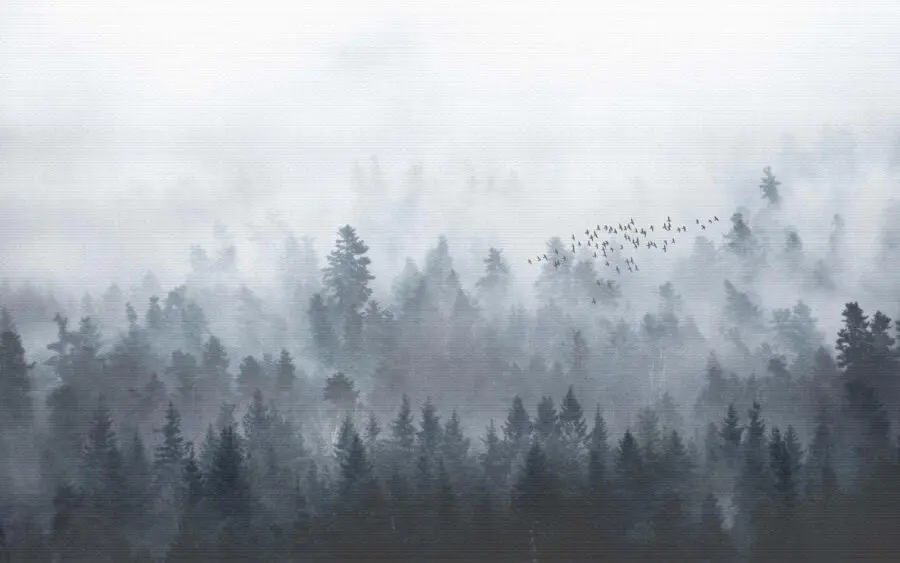 Transform any space into a serene escape with this stunning mural, “Group of Birds Flying Over a Forest.” Imagine waking up to a gentle forest mist and watching birds glide gracefully above the trees, their freedom whispering sweet nothings to your spirit. The soft watercolor tones create a calming atmosphere—perfect for unwinding after a long day. It’s like having a slice of nature right on your wall without the need for hiking boots or bug spray! Friends will want to nest in your cozy haven. So, why not add a touch of the wild to your walls?