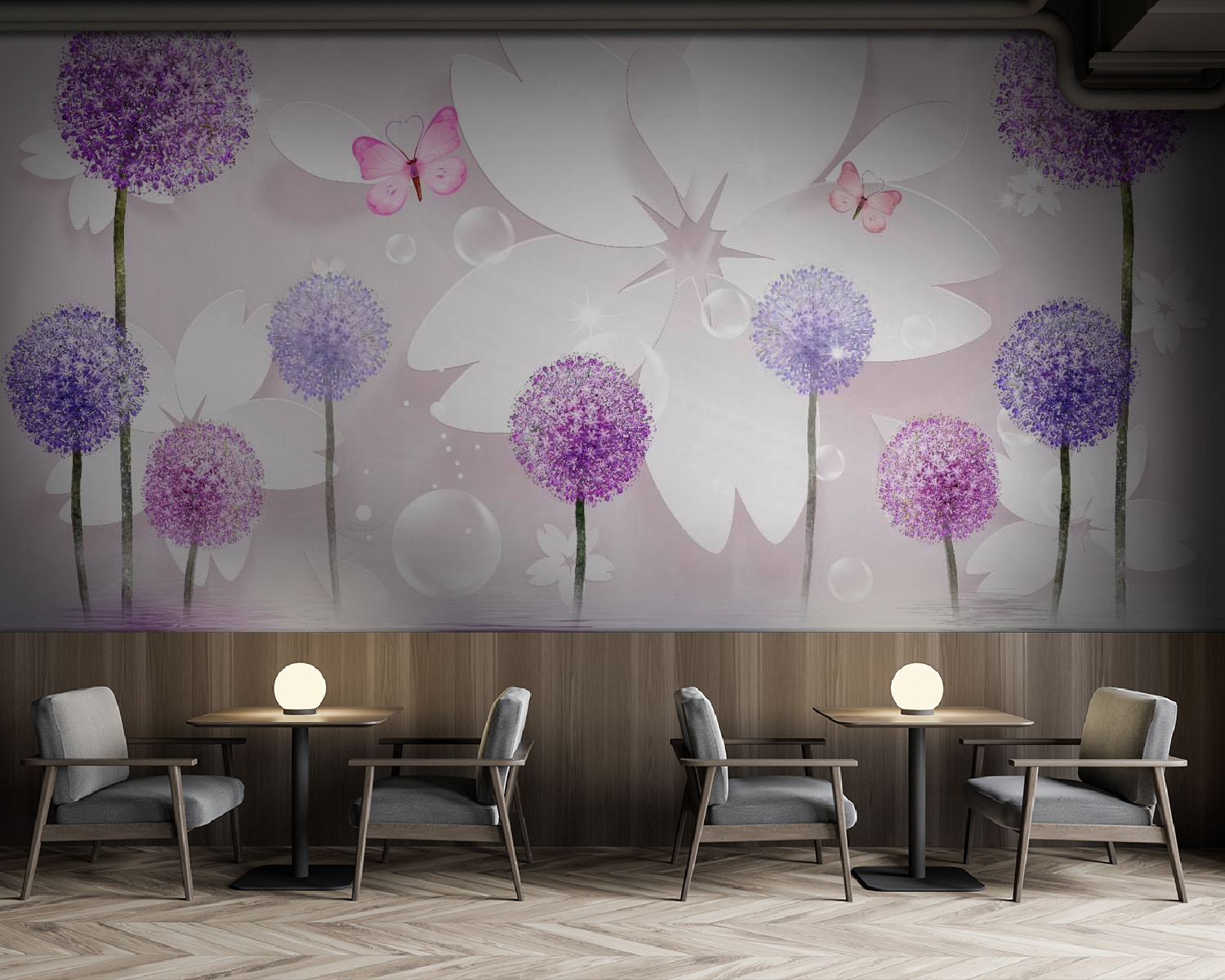 1 avaliação de Papel de parede Flores roxas e borboletas em harmonia