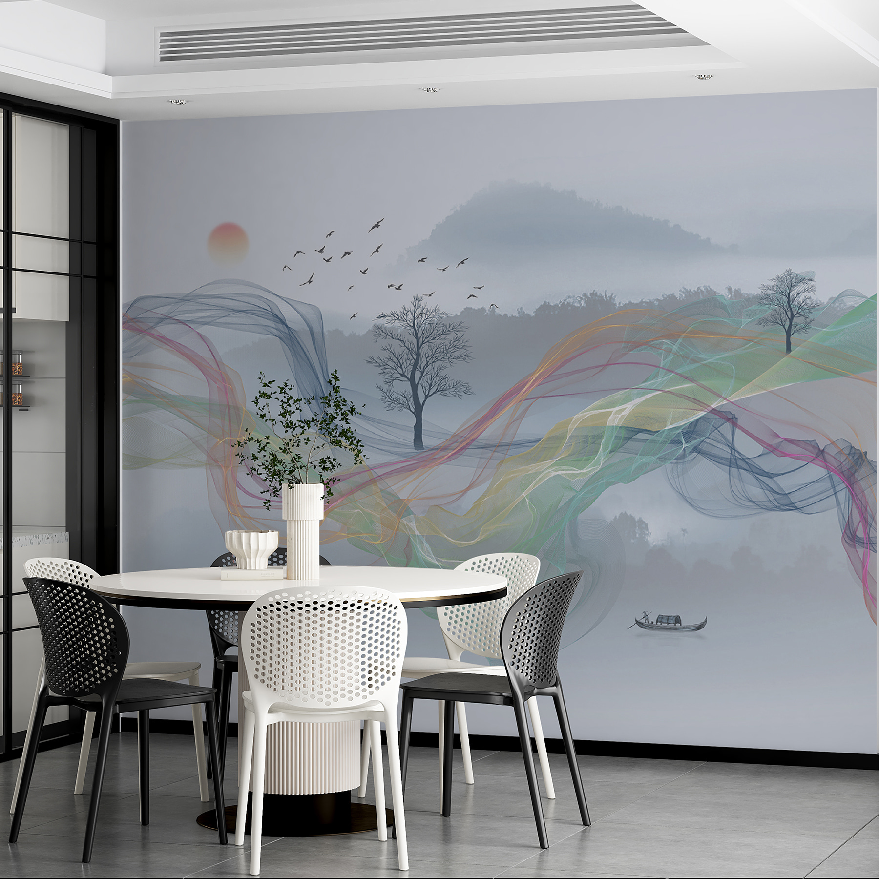 Transforme uma parede simples numa fuga serena com o Papel de parede Tree with No Leaves. Este design sussurra calma, apresentando uma graciosa silhueta de árvore no meio de suaves pinceladas de cor que fluem como uma brisa suave. Imagine-o num recanto de leitura acolhedor, onde a luz da manhã dança através da sua superfície, convidando a momentos de paz com uma chávena de chá quente.