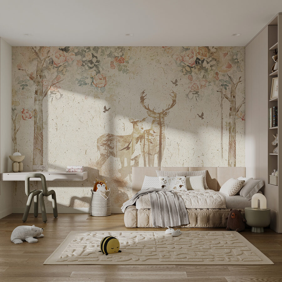 Imagine ter uma cena de floresta suave mesmo na sua parede! O mural de parede “Bird on a Tile” leva-o diretamente para uma floresta de sonho onde veados e pássaros coexistem pacificamente. É como entrar num conto de fadas sempre que entra na sala – perfeito para o santuário de uma criança ou uma adição encantadora a qualquer espaço que precise de um toque de capricho. As flores suaves e em tons pastel e os pássaros divertidos acrescentam um toque de magia. Não se trata apenas de papel de parede; é uma história à espera de se desenrolar – trazendo a serenidade da natureza diretamente para a sua casa. Mágico, não é? 🌸🦌🌿
