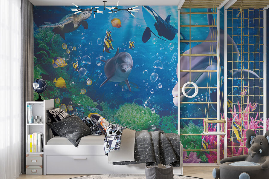 Mergulhe num mundo de maravilhas com este mural de parede vibrante que apresenta tartarugas a nadar alegremente num cenário subaquático animado. Imagine-se a olhar para golfinhos brincalhões e peixes coloridos a correr pelos recifes de coral, transformando uma simples sala num oásis aquático mágico. É como ter um paraíso subaquático secreto na sua parede, despertando alegria e criatividade. Perfeito para crianças, ou para qualquer pessoa jovem de coração, acrescenta um toque de diversão e intriga. Cada olhar pode inspirar um devaneio sobre aventuras no oceano e os mistérios do azul profundo. Quem é que não quereria isso? Perfeitamente lúdico, transforma qualquer espaço numa deliciosa fuga. Perfeito para um quarto de criança, uma sala de jogos ou mesmo um canto acolhedor onde se pode descontrair após um longo dia.